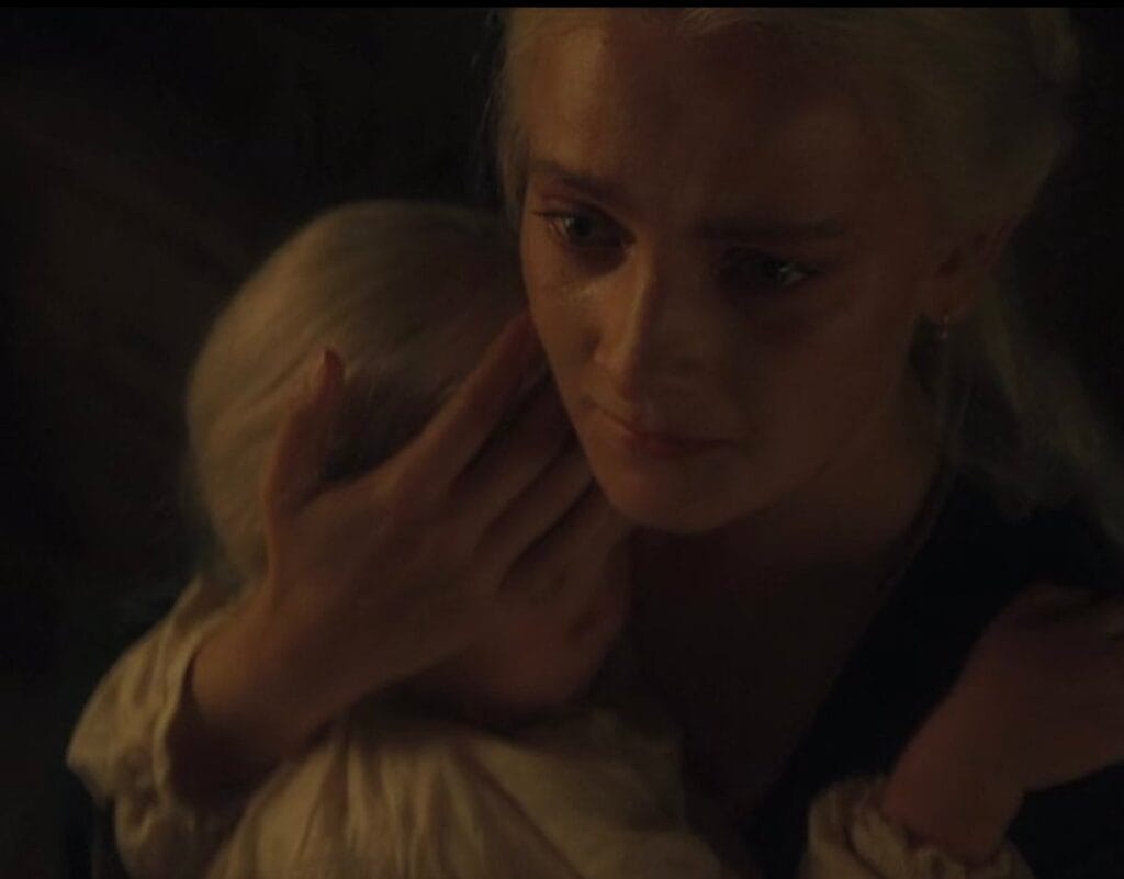Enquanto isso, em Pedra do Dragão, a Rainha Rhaenyra está inconsolável pela perda de seu filho e determinada a dar-lhe um enterro digno. A performance de Emma D’Arcy como Rhaenyra Targaryen foi destacada, transmitindo com maestria a angústia e a fúria de uma mãe em luto pela perda de seu filho.