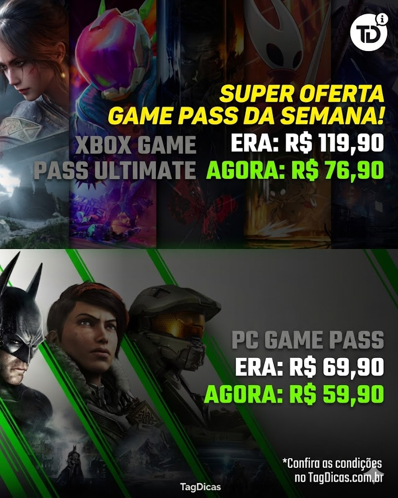 - PC Game Pass: de R$ 69,90 por R$ 59,99/mês